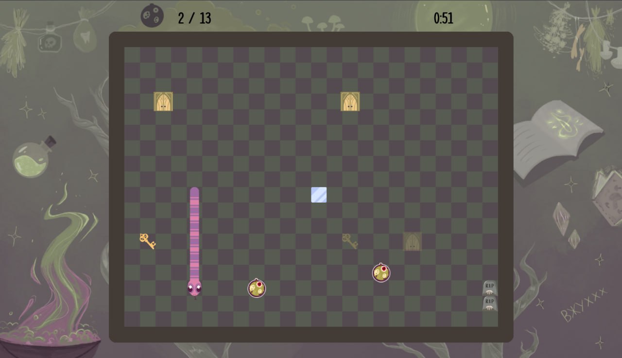🎃 Ночь принимает неожиданный оборот, когда загадочные воры похищают главное угощение! Теперь Змейке предстоит пуститься в головокружительную погоню, чтобы вернуть свои блюда к началу Хэллоуина.